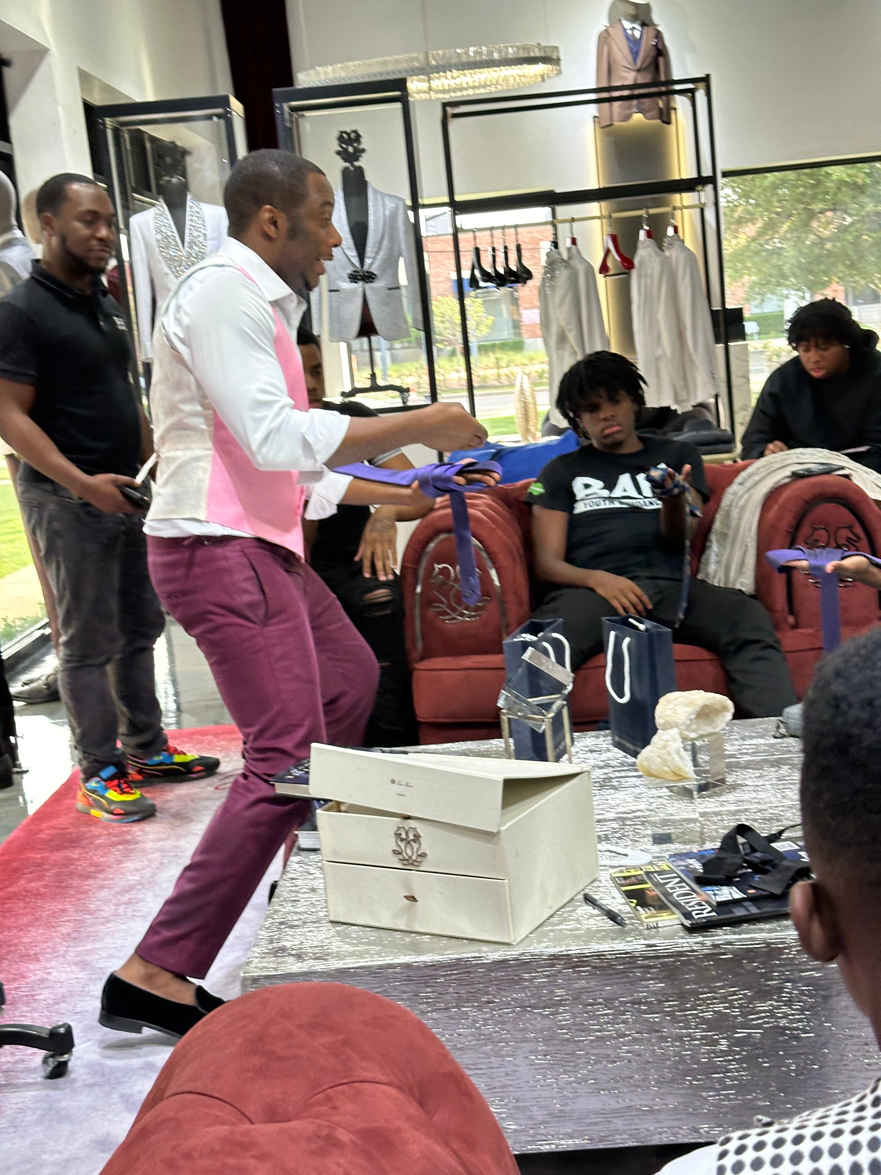A gallery highlighting the Becoming a Man (BAM) Youth Guidance participants in the Dress for Success initiative, building confidence and career readiness.