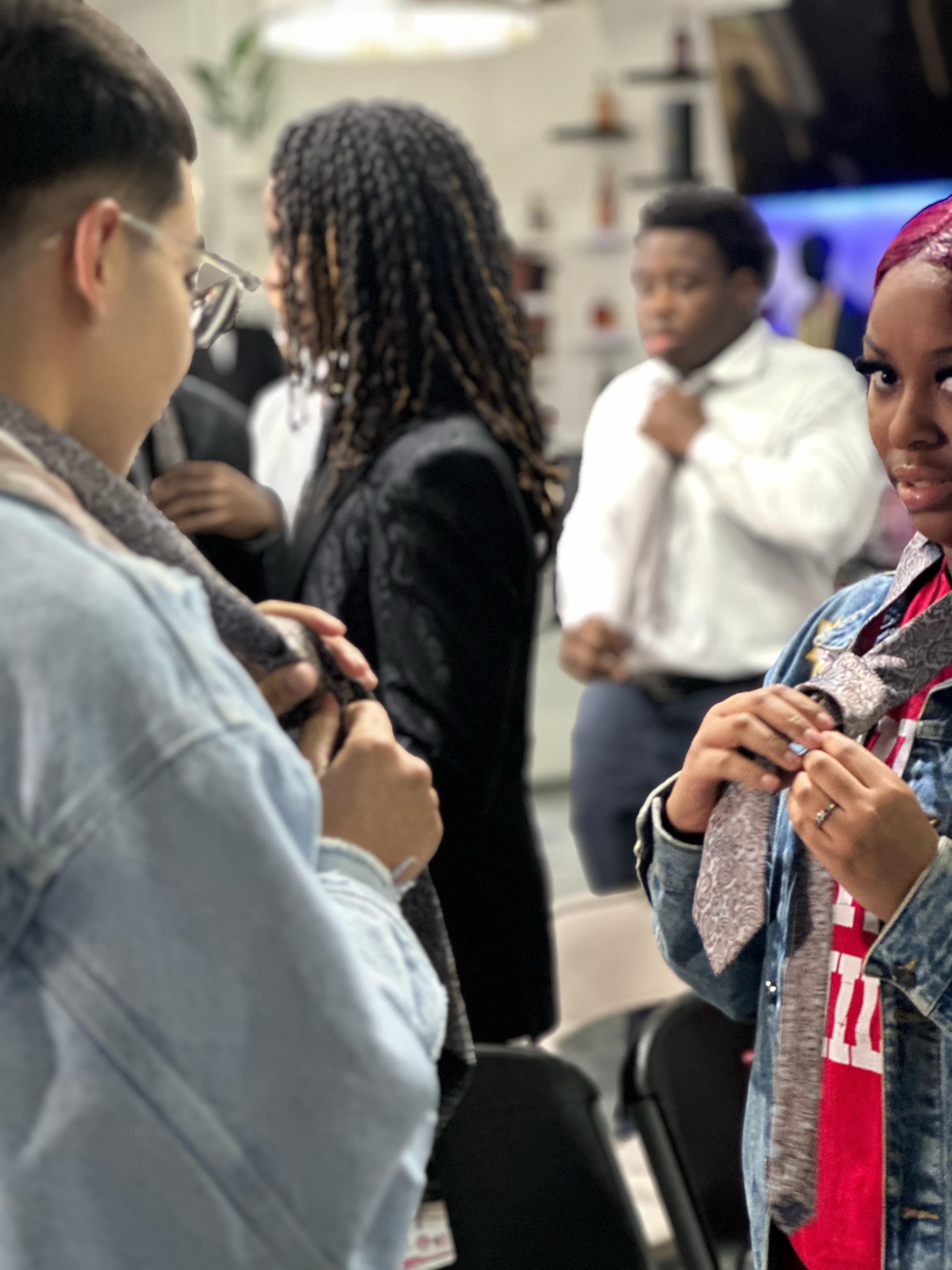 ✔️ Professional Attire & Grooming – Led by Dacyn Mofor, Fashion Director at Don Morphy, students learn how to dress for success, from tying a tie to assembling the perfect outfit for formal, semi-formal, and business casual settings.