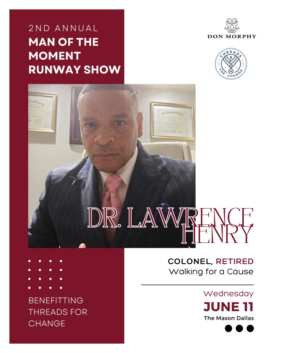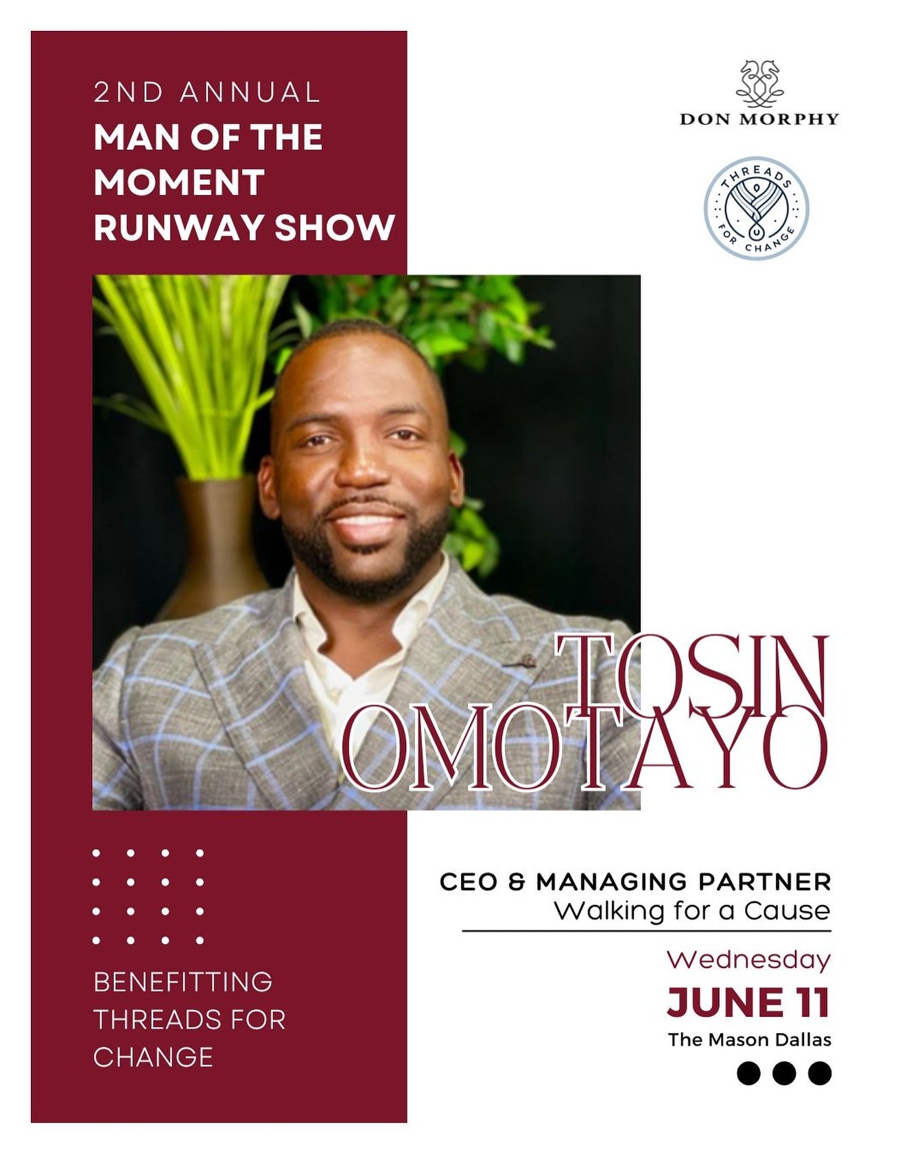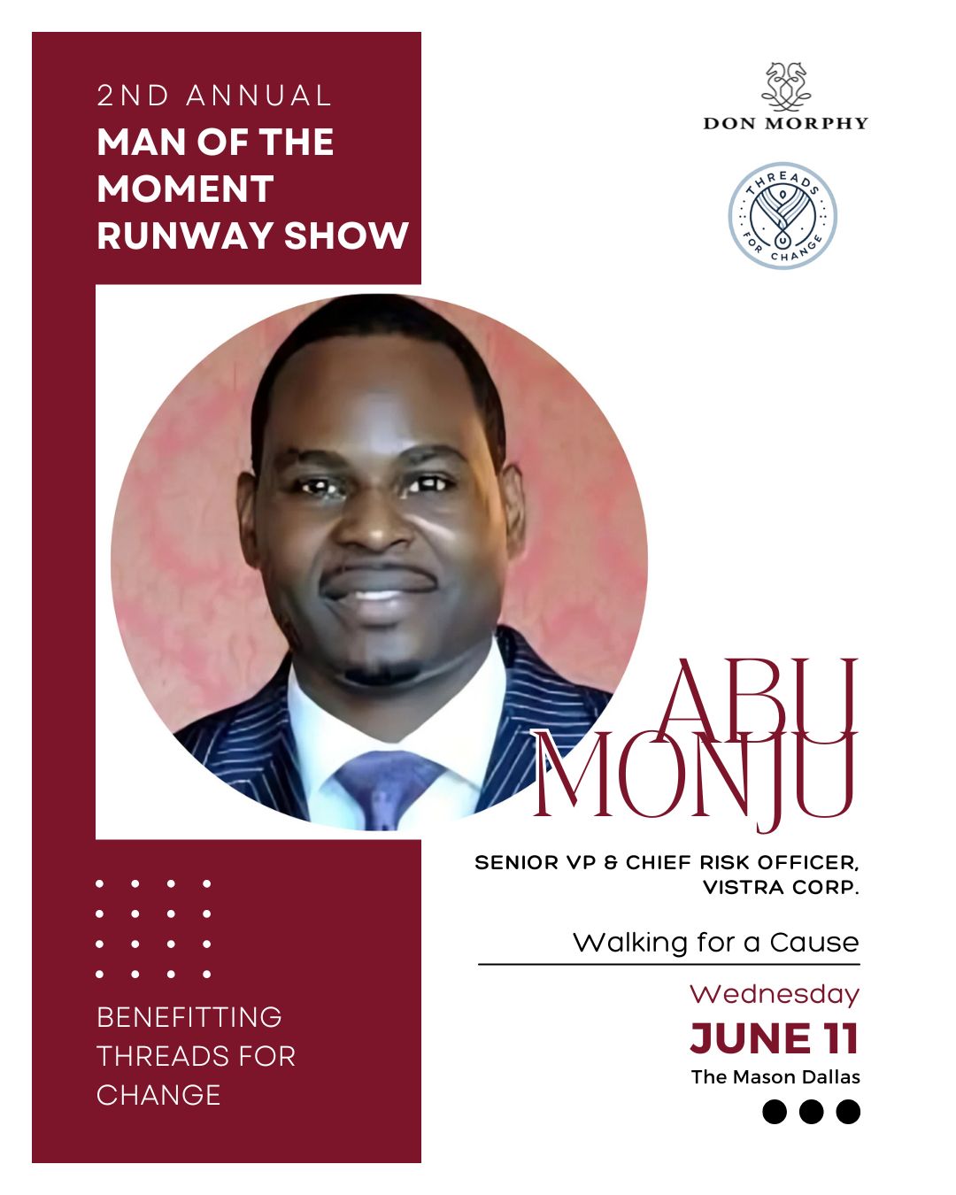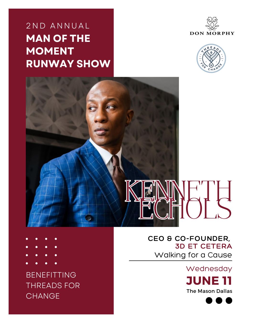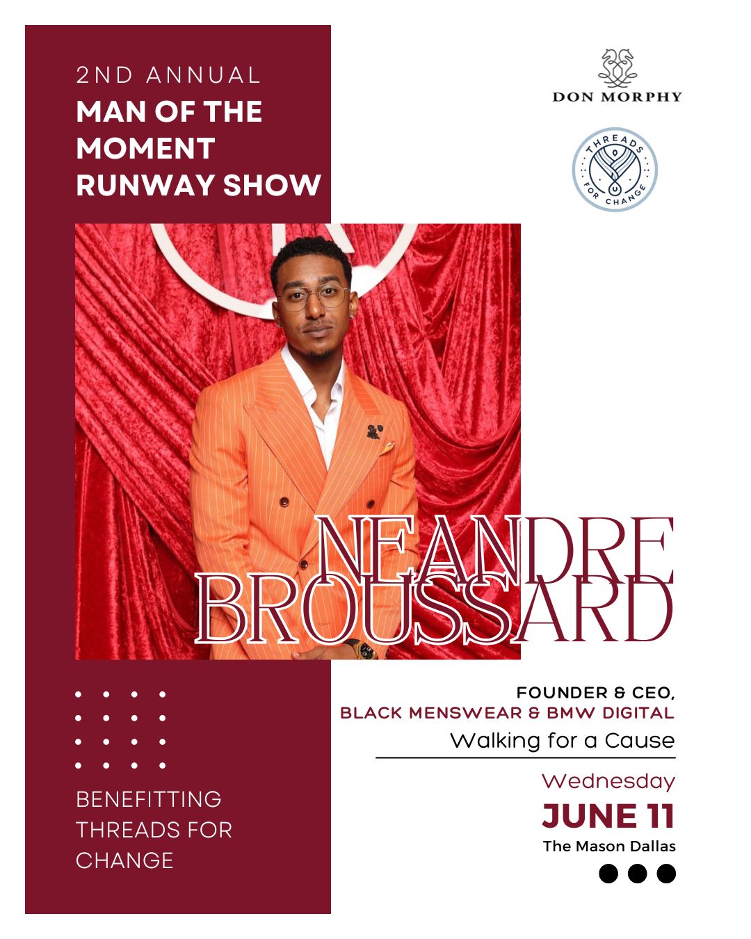 As Event Chair, Dr. Martin Kwende embodies the very spirit of Threads for Change - using fashion, education, and opportunity to empower lives. With his leadership, this year's initiatives will go beyond the runway to spark real, lasting change.