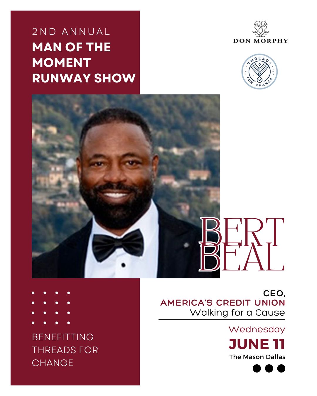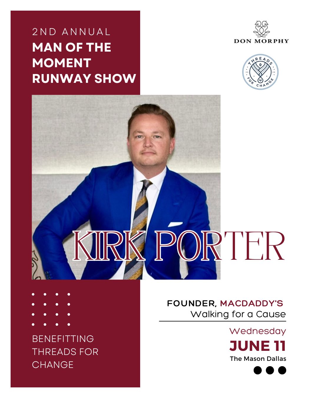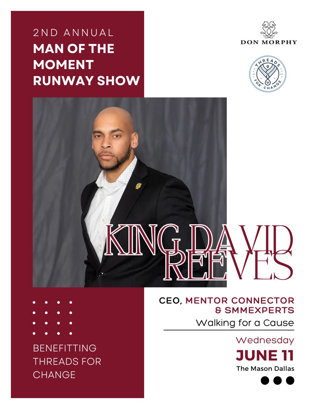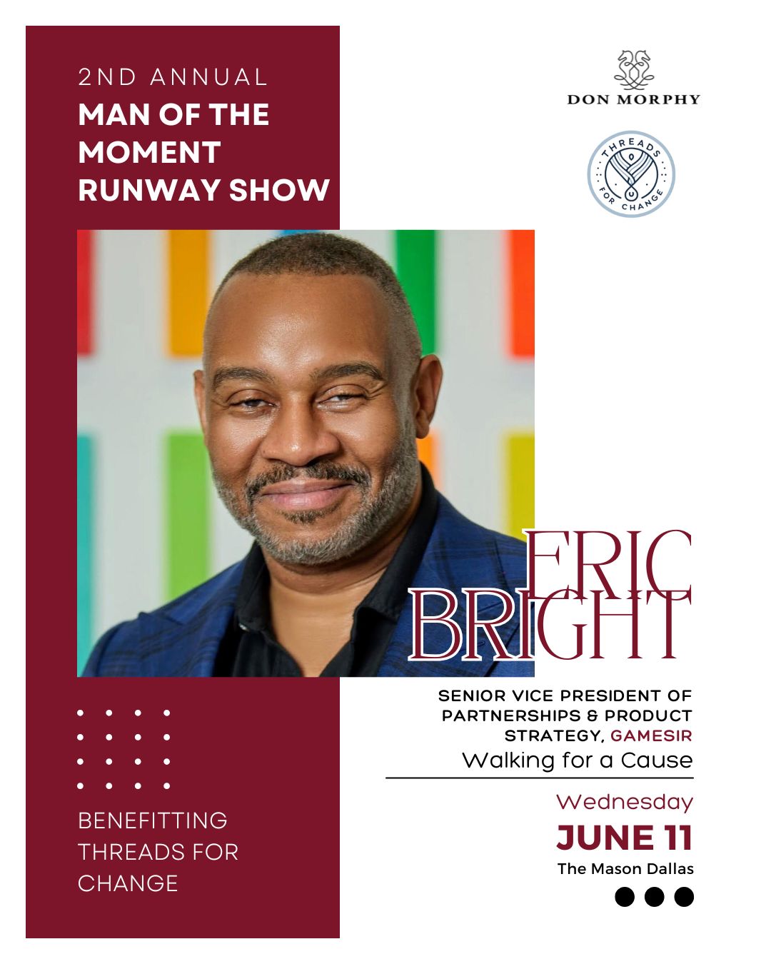 As Event Chair, Dr. Martin Kwende embodies the very spirit of Threads for Change - using fashion, education, and opportunity to empower lives. With his leadership, this year's initiatives will go beyond the runway to spark real, lasting change.